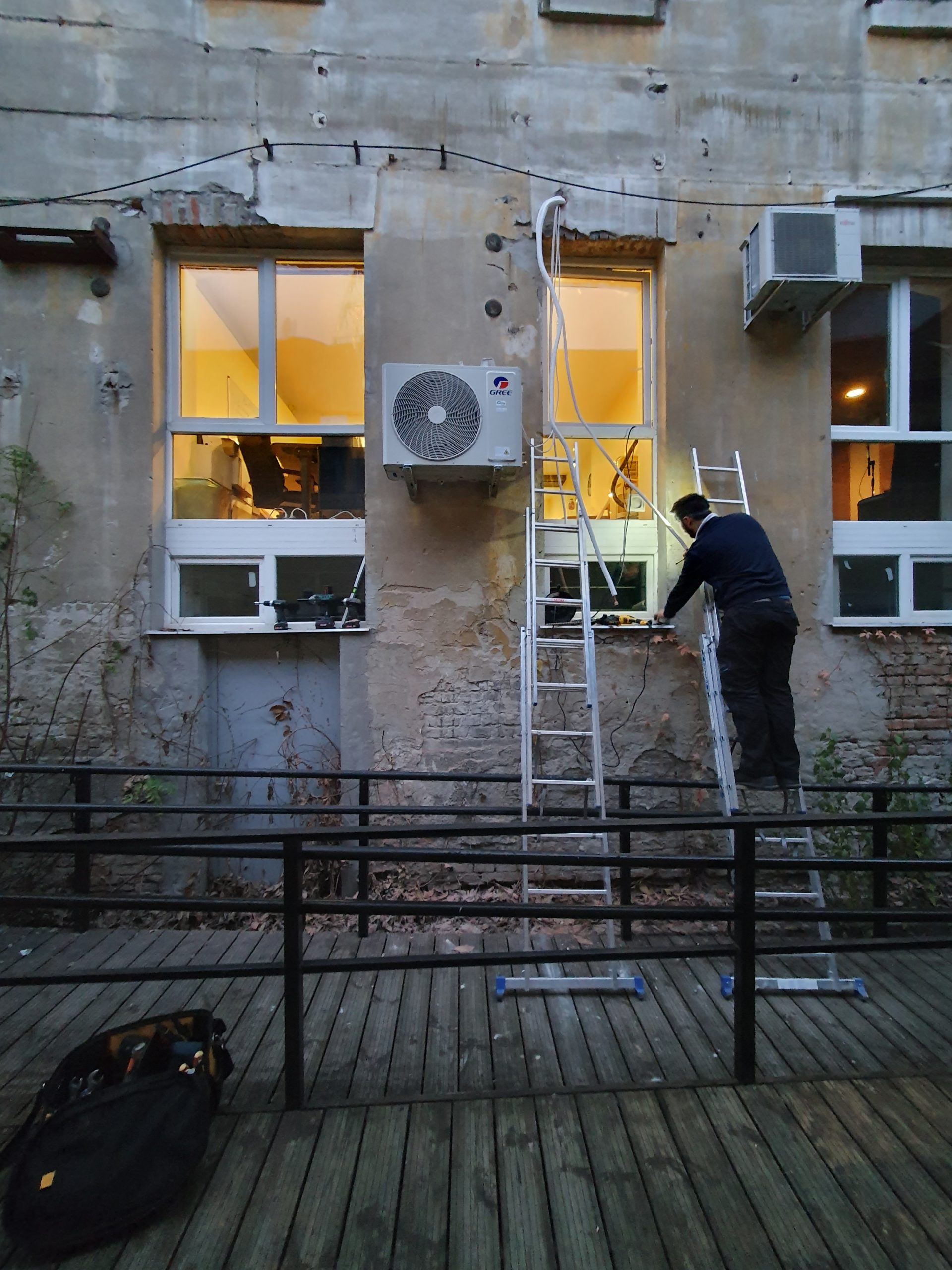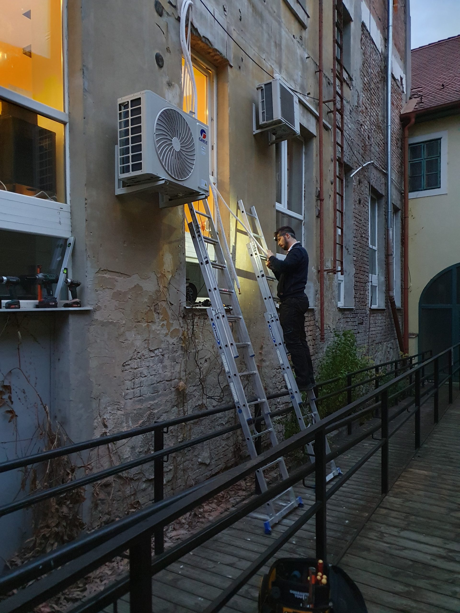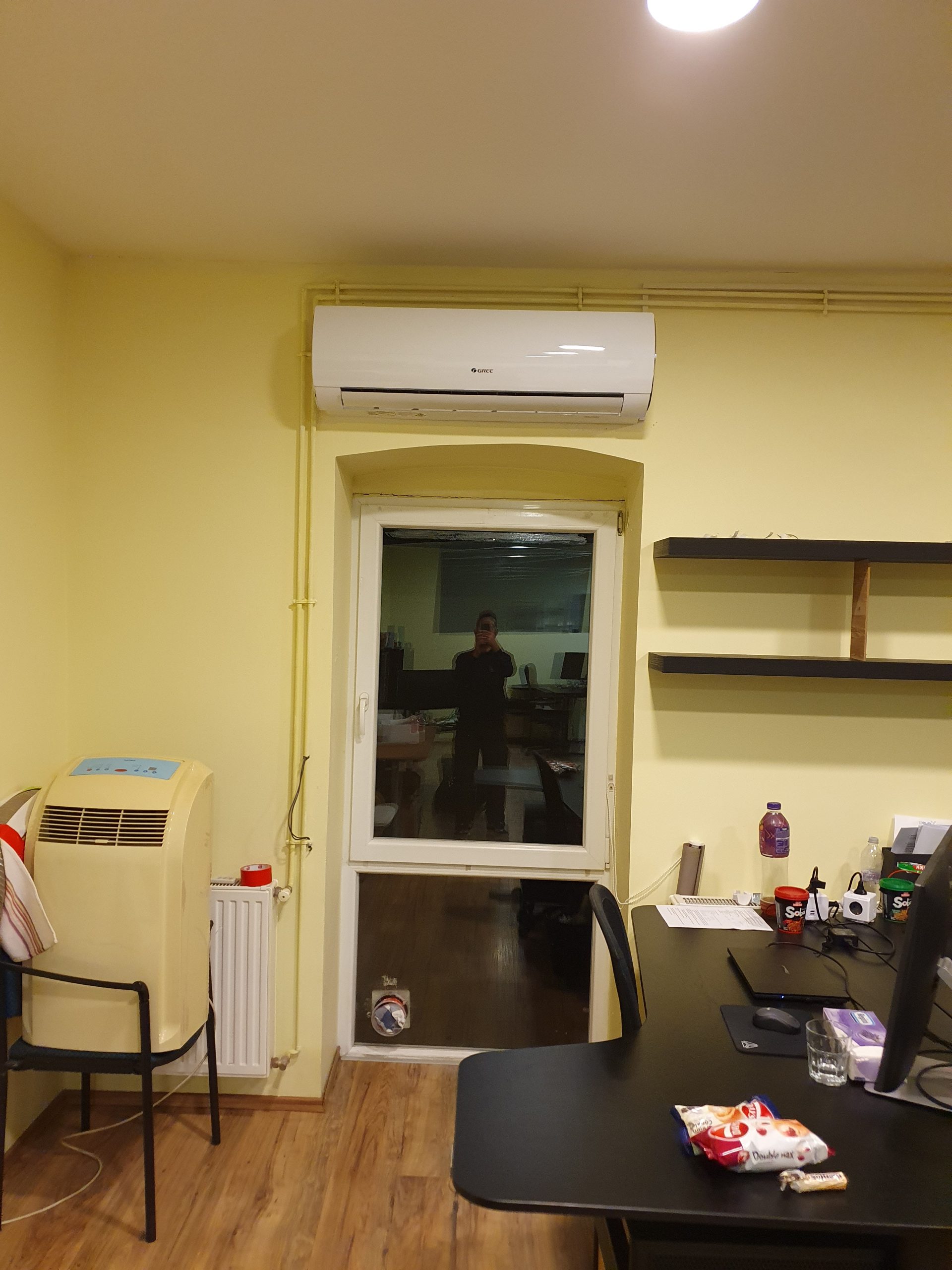 Irodai hűtés-fűtés igény merült fel egy 3.kerületi irodaház egyik irodájában. Kollégáink a felmérés során megállapították, hogy az áramvétel egy központi kábelből érhető el, amihez vezetékezés, dobozolás szükséges. Az üzemeltető magas árajánlatot adott és a munka elvégzése is beláthatatlan volt, így kollégáink kedvezőbb áron és gyorsan megcsinálták a telepítéshez szükséges elektromos munkálatokat. Ezután már szerelték is be a Gree comfort x 5.3 kw berendezéseket. A nagyobb teljesítményre a helyiség mérete miatt volt szükség, amely az egész irodát el tudja látni hideg-meleg levegővel.